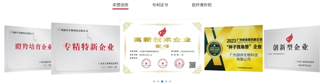 凭借突出创新能力与成长潜力,源井生物先后获评高新技术企业、专精特新企业、瞪羚培育企业、2023 年广州 “种子独角兽” 创新企业等多项权威资质,以高标准质量管理、高等级科研环境、高成长创新潜力,筑牢企业发展根基。